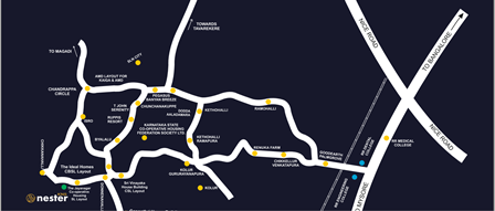 KNS Nester - a premium plotted development near Big Banyan Tree: 25 acres of pristine green land with 150+ BMRDA approved plots. Its connectivity to the rest of Bangalore makes it the ideal piece of land for Investment. Its proximity to the rest of the city makes it the hottest investment destination in Mysore Road. The location, the connectivity, and the coveted nature of the land combine to make KNS Nester Bangalore's most affordable plotted Investment.”.